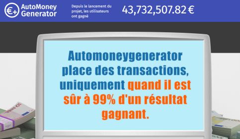 Si vous venez sur cet article, c’est que vous avez probablement déjà entendu parler de AutoMoneyGenerator. Il s’agit d’une arnaque assez classique sur internet qui promet aux gens de gagner des millions d’euros très facilement. Il faut se rendre à l’évidence, plus beaucoup de monde ne croit aujourd’hui à ce genre de promesse. Il n’empêche que certains doivent toujours tomber dans le panneau sinon cela n’existerait plus. L’arnaque AutoMoneyGenerator, comme son nom l’indique, est censée vous faire gagner de l’argent de manière automatique, sans avoir à faire quoi que ce soit.